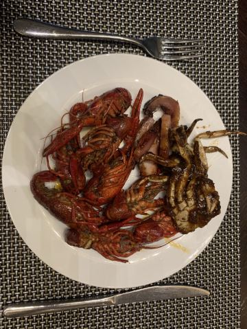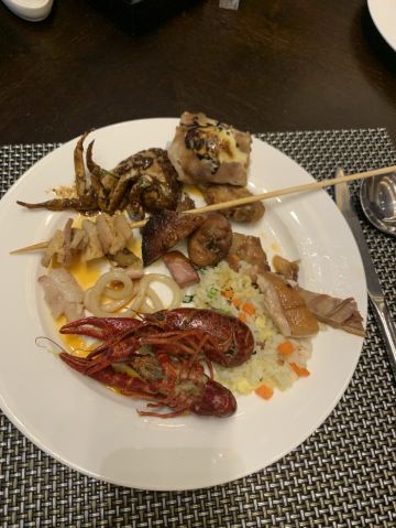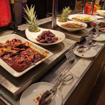 餐厅提供自助餐,各式餐品一应俱全,海鲜区种类齐全,味道鲜美。刺身类食材新鲜,口感丰富。烧烤味道正宗,火候把握的刚刚好。甜品区让人眼花缭乱,咖啡均是现做。