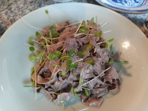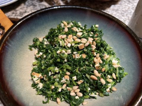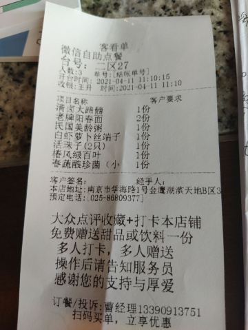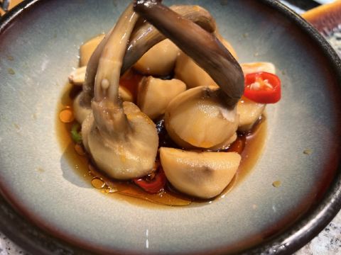 因为知道南京大牌档和晶丽是一家,因此每到换季,就喜欢来大牌档吃季节菜,那也是每一季晶丽厨师试菜的成果。 晚上我们来大牌档仙林金鹰店,点了盐水鸭、椒麻茨菇、蟹黄汤包。两位姑娘,一位福建人,一位西安人,都找到各自非常喜欢的菜品。我最喜欢四季常青的香干马兰头,和这个季节的椒麻茨菇。带着辣味和江南水乡粉糯香气的茨菇入口的刹那,好像一地鸡毛的日常都不见了,能看见月亮上的环形山和宁静海,是非常美妙的感觉。