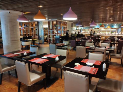 海鲜、烧烤、中西点均保持一贯质素,午餐从11:30~14:00,位于酒店七楼,如自驾,需从地下车库先乘电梯到大堂,然后再转乘观光或其它电梯前往,就餐可免停车费,但离开前必须告知前台车牌号。