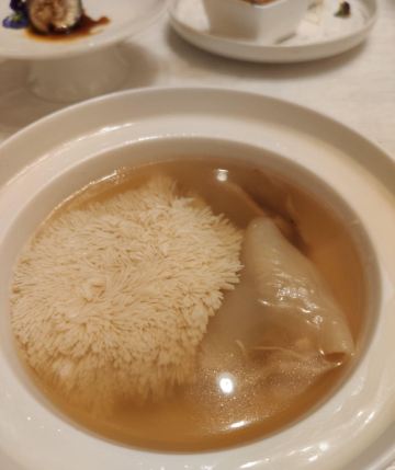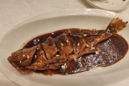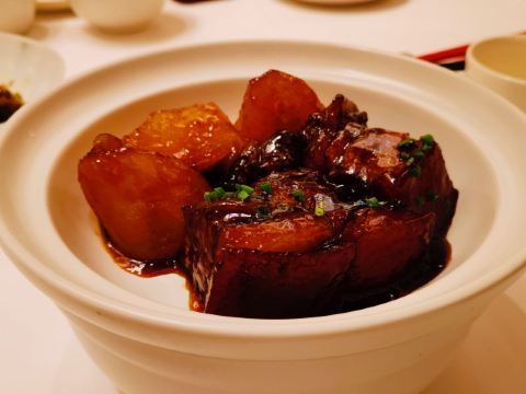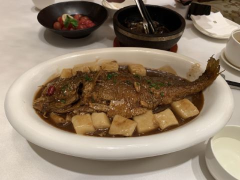 YoYo_8F6W9A0G因为提前预定不用等位,餐厅服务比较好,盐水鸭腥味不重,口感很嫩。文思豆腐口味也很好,很清淡,又不失鲜味。灌汤黄鱼,鱼肉比较清淡,但是肚子里面的汤很鲜。宫爆虾球量很多,属于糖醋口味。樱桃鹅肝很适合拍照,但是口感太腻。扬州炒饭不太欣赏的来。灯影牛肉没有了很是可惜。总体来说,用餐体验较好,桌上小橘子很甜,枸杞红枣茶也挺好喝,小姐姐添水很勤,服务比较好,给个赞。
