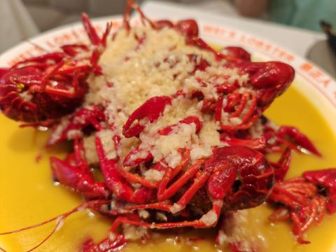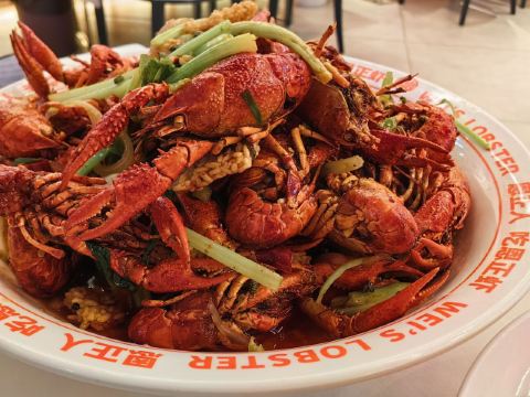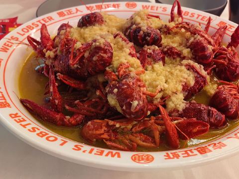 神神叨叨了一天 终于到了这家传说中在南京颇有声望的小龙虾店 名字叫做魏虾神 呕吼 有点意思哈 店铺离德基广场不远 属于徒步可达的范畴 去的早 店里还比较空 不过听后面来的意思 没有预约 walk in肯定是不行的 问了一下友人 原来咱也是早早订了位的 环境算是不错 大气敞亮 属于龙虾店里环境比较好的 点了金汤蒜泥龙虾 跟网红秘制龙虾 口味确实不错 龙虾个头饱满 虾肉紧致 尤其这个网红秘制龙虾 第一次试 很有辨识度 服务也不错 小姐姐餐盆换的勤快 整的我都有点不好意思了 其实旁边有个垃圾桶的 自己来 OK的 Tips 他家有签到打卡的西瓜汁 好喝的 不过点评上要付一毛钱 店里写着免费送 既然都做引流了 建议商家统一一下口径 好人做到底 给个福利 就直接送了吧