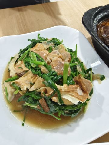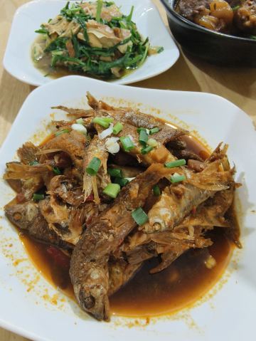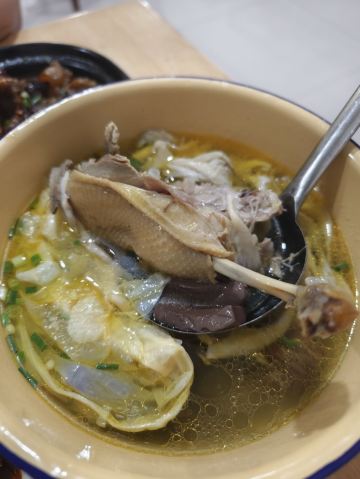 去月亮湾的路上,前不着村后不着店,有这么两家兄弟俩开的生意火爆的店。 大厅里开着空调,那一桌子老鸭汤可真是壮观,老板说一半堂食,一半外卖,来晚了还吃不上。 老鸭汤确实赞,清爽鲜美,没有科技与狠活,配上柴火大灶锅巴,美滋滋。 猪蹄煲,味道不错,火侯欠点。 小杂鱼,骺咸,踩雷。 韭菜千张,蛮好。 走过路过,不要错过,值得一尝。
