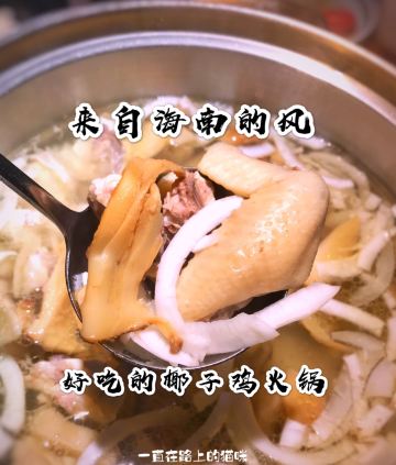 一直在路上的猫来自海南的风|超好吃的海南椰子鸡火锅 超爱喝椰子,用百分百椰子水煮的地道海南文昌鸡,鸡肉香嫩汤底鲜甜,好吃的不仅仅是椰子鸡,还有牛肉滑、虾丸、肥牛粒、花胶等,再来一碗椰子鸡最佳搭配腊味煲仔饭,吃货的快乐回来啦。 ————菜品——— 👉#松茸椰子鸡# ✨招牌是椰子鸡锅底,但是还想汤再更鲜一点就选了加松茸的。椰子是精选的老椰,椰水会更甜,椰肉更多。百分百纯椰水和椰肉做汤底,纯正清甜,一定会忍不住喝很多汤。鸡是海南文昌鸡,和松茸一起现场加入锅底,一沙漏的时间就可以吃啦。一定要配上椰子鸡专用的酱料,沙姜、小米辣、青柠和秘制酱油。经过椰水煮制的鸡肉清甜滑嫩,蘸一下调料太好吃了。松茸给椰子鸡汤增色不少,特有的菌菇类的鲜释放在汤中,经过汤的浸泡松茸也更嫩滑。 👉#陈皮牛肉滑# ✨牛肉打成泥,比起直接吃牛肉更加嫩滑,中间加了陈皮带有淡淡陈皮香。 👉#肥牛粒# ✨端上桌就很惊艳,摆盘好看,煮三分钟,肥瘦相间,特别因为饱吸了椰子汤底而格外香嫩。 还有肥牛卷、虾丸、羊肉卷都很好吃,蔬菜类也毫不逊色,第一次吃珍珠马蹄,吃起来脆中带点糯,有点像淮山但比淮山脆一点。竹笙和响铃都是适合烫火锅的蔬菜,因为椰子汤底太美味而格外好吃。 👉#凉菜类# ✨凉菜现在还有买赠活动,酸甜开胃的小番茄是女生最爱,牛腱子卤得入味,份量还不少,脆嫩爽口的海蜇等都不错,等鸡肉的时候先来点凉菜垫垫肚子。 👉#腊味煲仔饭# ✨跟椰子鸡是最佳搭配,腊肉腊肠特有的咸香融入到米饭里,还有香糯的芋头粒,服务员会把最后的锅巴装出来,喜欢池脆脆的锅巴的一定要试一下,特别香脆。 👉#饮料# ✨有各款水果和椰青水混合的饮料,但我最爱的还是原汁原味的椰青水,奶香味十足,喝完了还可以挖点椰蓉吃。 🏖餐厅环境:温馨舒适的就餐环境。暖色调灯光使人放松,餐具都带有热带风情,感受到了来自海南的风。服务员态度热情亲切,加汤上菜都很及时。