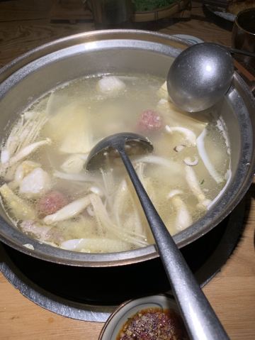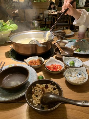 来自海南的风|超好吃的海南椰子鸡火锅 超爱喝椰子,用百分百椰子水煮的地道海南文昌鸡,鸡肉香嫩汤底鲜甜,好吃的不仅仅是椰子鸡,还有牛肉滑、虾丸、肥牛粒、花胶等,再来一碗椰子鸡最佳搭配腊味煲仔饭,吃货的快乐回来啦。 ————菜品——— 👉#松茸椰子鸡# ✨招牌是椰子鸡锅底,但是还想汤再更鲜一点就选了加松茸的。椰子是精选的老椰,椰水会更甜,椰肉更多。百分百纯椰水和椰肉做汤底,纯正清甜,一定会忍不住喝很多汤。鸡是海南文昌鸡,和松茸一起现场加入锅底,一沙漏的时间就可以吃啦。一定要配上椰子鸡专用的酱料,沙姜、小米辣、青柠和秘制酱油。经过椰水煮制的鸡肉清甜滑嫩,蘸一下调料太好吃了。松茸给椰子鸡汤增色不少,特有的菌菇类的鲜释放在汤中,经过汤的浸泡松茸也更嫩滑。 👉#陈皮牛肉滑# ✨牛肉打成泥,比起直接吃牛肉更加嫩滑,中间加了陈皮带有淡淡陈皮香。 👉#肥牛粒# ✨端上桌就很惊艳,摆盘好看,煮三分钟,肥瘦相间,特别因为饱吸了椰子汤底而格外香嫩。 还有肥牛卷、虾丸、羊肉卷都很好吃,蔬菜类也毫不逊色,第一次吃珍珠马蹄,吃起来脆中带点糯,有点像淮山但比淮山脆一点。竹笙和响铃都是适合烫火锅的蔬菜,因为椰子汤底太美味而格外好吃。 👉#凉菜类# ✨凉菜现在还有买赠活动,酸甜开胃的小番茄是女生最爱,牛腱子卤得入味,份量还不少,脆嫩爽口的海蜇等都不错,等鸡肉的时候先来点凉菜垫垫肚子。 👉#腊味煲仔饭# ✨跟椰子鸡是最佳搭配,腊肉腊肠特有的咸香融入到米饭里,还有香糯的芋头粒,服务员会把最后的锅巴装出来,喜欢池脆脆的锅巴的一定要试一下,特别香脆。 👉#饮料# ✨有各款水果和椰青水混合的饮料,但我最爱的还是原汁原味的椰青水,奶香味十足,喝完了还可以挖点椰蓉吃。 🏖餐厅环境:温馨舒适的就餐环境。暖色调灯光使人放松,餐具都带有热带风情,感受到了来自海南的风。服务员态度热情亲切,加汤上菜都很及时。