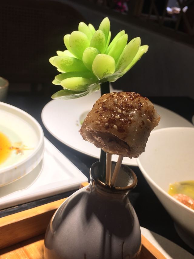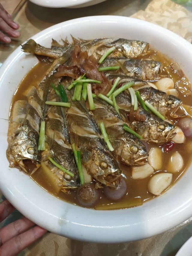 拖延小姐鸡毛兑糖的升级版,地方略偏,但场地大,装修还不错,适合家宴 服务不错,服务员都训练有素,微笑服务 茶水、餐前水果零食,入座后一一奉上 香酥金丝翅,鱼翅炸制,造型漂亮,味道不错,炸的一点也不油腻,里面是雪白的鱼肉,还能吃到一点点鱼的软骨 油渣芋艿羹,单人份的比较小碗,做的蛮好吃的,芋艿细腻,羹的调味不错 清炒菜心,选取菜中心最嫩的部分,与虾干咸肉同炒,借取了虾的鲜味和咸肉的肉香 宁波汤圆,据说每天限量,比平常吃的汤圆确实优秀很多,个大皮薄,猪油芝麻馅饱满,作为不爱吃汤圆的宁波人,偶尔吃一个感觉还蛮不错的 生意很好,连中午也基本满座,临近年关,可作为宴请备选之一