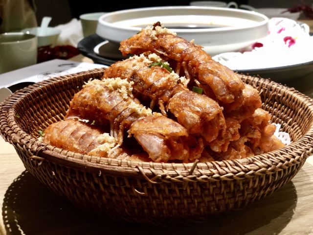 Jimao Dui Tang·Shang Yan Restaurant把宁波菜的食材本味和创意融合地恰到好处的一家店。推荐芝士竹节虾,酱骨蟹,葱油海瓜子。 个人觉得点单率颇高脆皮大肠反而是一般般,表皮不够酥脆。 还有好多新奇创意的菜没点,期待下次二刷