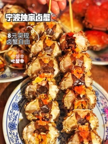 伊利伊利ELien吃蟹季 被pyq的八块钱客串出品卤蟹吸引而来,瞬间实现卤蟹自由。 . 蟹🦀的个头不算大,但是每一只已经去掉了毛毛腿,剥开蟹壳,满满的蟹黄映入眼帘!🥰 直接对半掰开,入嘴咀嚼,口口都是蟹的鲜味,蟹已经提前卤制入味了,咸滋滋正好,都是母蟹,吃的我太满足了!! · [爱心]他家的烤物口味自然不用说了,每次必点: 「黄金玉米天团」「锡纸虾仁烤蛋」「千页豆腐」 · 🐙「章鱼马蹄饼」是我新挖掘的宝藏❗️❗️ 一点也不腥还带着丝丝的甜味 🦐「锡纸虾仁烤蛋」真的有只只大虾在里面哦~口感贼顺溜。 · 吃肉的话「掌中宝」「黄金掌中宝」「鸡翅」 这几个闭眼点! 他家的「臭豆腐」也是一绝 湖南的味道分分钟就出来了! 配上宁波独一家的霸王酒杯🍻 喝酒吃串,太惬意~ · 🏠【店名】:客串出品·长沙明星烧烤 📍【地址】:钱湖天地439弄77-2 解放南路101号(Nova旁) 🙇🏻♀️🙇🏻♂️【人均】:80元/人 · 宁波美食 宁波探店 烧烤 夜宵好去处 宁波旅行 宁波网红店打卡 网红店