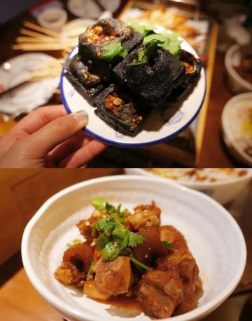 宁波几时休反客为主,串出精彩。 正所谓“人生如戏,全靠演技。” 张艺谋在其导演的《有话好好说》中客串一个收破烂的,一句“安红——鹅想你!”成就经典画面; “我见过穿的最多的车模”张莉馨亦是如此,短短几分钟的客串车模,使其红透半边天。 因此“客串”出品,亦可点赞。 这家餐厅位于由宁波亚力山大置业有限公司开发的钱湖天地商业中心腹地,相邻田波泡椒牛蛙和D Sky Home,门前摆放了几辆小型卡丁车,供顾客免费游玩。 入内,正对着收银台,餐后微信付款,商户显示全称是宁波市鄞州中河久创烧烤店;店内有无线,WIFI密码是88008833;餐厅装修中西贯通,乍看质朴,内含别致,墙绘简洁逼真,三国题材萌感十足;每张桌子上都摆放有签桶、水壶、餐具和续温的恒温器。 做为我们人类最原始的烹调方式----烧烤,在长达数千年的历史更迭后,演变出了糊泥烤、挂糊烤、钩吊烤、篝火烤等形形色色的烧烤方式,且各地又有自己独特的食材而形成的烧烤风格,因此,我认为不管是那种模式,能呈现给食客鲜美的食物才是最好的方式。 说到这“苗夷化外之境的湘西小串”和“纳三湘四水的岳阳烧烤”,“牛油、黄喉、掌中宝”是必不可少的食材推荐,餐厅的黄金牛油20元/手(20串),这牛油取自黄牛胸尖的一丁点脂肪,烤炙火候很关键,色泽金黄,外焦脆内饱满,一口一串,乃至数串,体味浓郁油脂香混合焦香、奶香味四溢的多重满足感,难怪有人说“一串正宗、好吃的牛油,是评判一家湘西烧烤店是否正宗的唯一标准。” 老宁波牛肉砂锅18元,一碗热腾腾的砂锅,足以抵御寒气凛冽的冬夜,尤其是这样一碗漂浮着油豆腐、葱花、粉丝、青菜和牛肉,色泽酱红的砂锅。 阿婆凉糕(甜点)10元,蓝纹瓷碟、瓷碗、瓷调羹,古风满满,花生碎、白芝麻的存在,丰富了凉糕的硬度和咀嚼感。