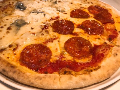 拖延小姐其实原本种草的是1861,还没来得及去,中间就听说了一些故事,衍生出这家Ciao,看照片基本没差,而且新店开业还有优惠,那么就愉快的走进来了 格局非常的简单,透明厨房,一片座位,这种格局让我联想到教室…… 披萨口味十多种,价格78-128之间,并不算便宜,想点双拼,但中意的月亮pizza不能做双拼,就选了个四喜芝士和萨拉米香肠 透明厨房的好处是,可以欣赏披萨的制作过程,在窑炉里噗噗凸起的过程,看得人直咽口水 瑞可塔、蓝波、烟熏奶酪、帕马森,4种芝士,蓝纹奶酪真的是“臭豆腐”版的存在,相当带劲,芝士爱好者可以试试这款又香又腻的四拼 另一半的萨拉米风头被隔壁的蓝纹抢了,选的香肠不是很咸,芝士依旧浓郁,还不错,肉类的披萨普遍不会难吃 小食玉米片也很赞,薄而脆,炸的不油 咖啡杯相当喜欢,造型圆润可爱,花纹带有一点乡村小清新气息,老板能悄悄告诉我哪里买的么, 阿芙加朵,很推荐,用的冰淇淋的奶香饱和度高,与咖啡的苦融合后相得益彰 餐中有送柠檬利口酒,帮助消化,超好喝 服务很棒,看着像是老板或主管的人一直在一边观察顾客的需求,全程微笑服务,很多大西餐厅都不见得有如此舒心的服务 店里陈设的小物件都好喜欢,tiffany色系列的多士炉、电热水壶,甚至小冰箱,还有意大利最有名的两个摩托车品牌,各有一台,好看极了,罗马假日的情景自然浮现