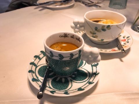拖延小姐的确还是喜欢这家多的多,也能理解老板为啥说理念不同,另一家已经偏远的走向了网红 Ciao的披萨底我是蛮喜欢的,口感、厚薄都跟意大利的相差无几,只不过有些地方会做的更脆一些,各家有各家的配方,馅料还是推崇肉馅,肉馅香而且好吃,这里也不会有奇奇怪怪的馅,除了榴莲,最近路过几次,发现花臂小哥哥没有在亲自做披萨了 烩饭也好吃,相对当地来说米饭里的汁稍微稀一点点,也不碍事,米饭也是改良过的,太正宗难以迎合大众口味,反正好吃就行,分量感人,比意大利餐馆的还多 蜜瓜火腿第一次点,火腿一般般吧,毕竟价格不贵,蜜瓜也太好吃了吧,怎么选的,又脆又甜,火腿还有,蜜瓜全被掏完了 最后依然是一小杯利口酒,去了2次都没法喝,只咪了一小口,Ciao的利口酒应该是调过了,果味浓一些,超级好喝,带回来纯的利口酒更浓稠更烈一些,也没那么好入口,利口酒喝进去会有种热热的烧的感觉,吃完感觉很通透,吃完大餐后顺一下很舒服