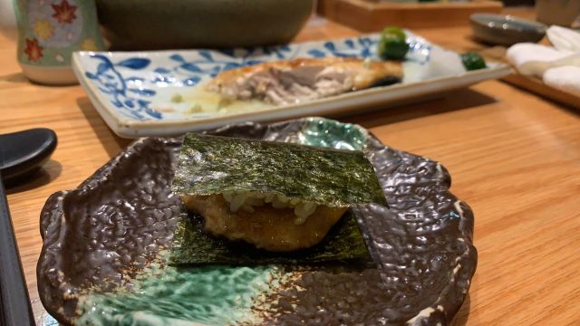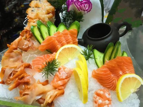 这是一家专做日式料理的餐厅,木质的屏风,榻榻米式的座位。一楼是散座及卡座,二楼都是包厢。餐厅出品的菜肴也饱受好评,摩托罗拉卷里面塞满了炸虾和蔬菜,外面裹以鱼片和鱼籽,内容丰富,调味正好。三文鱼刺身数量上不是特别多,但每片都切得蛮厚,口感相当饱满丰腴,新鲜度很高。