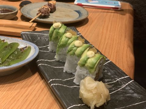抹茶布丁,鹅肝寿司,甜虾刺身,三文鱼刺身,烤物,蔬菜天妇罗,特级刺身拼盘,特上牛舌,特色鱼生饭,牛肉豆腐锅,烤银鳕鱼,雪花牛舌,香烤鳗鱼饭,摩托罗拉卷,明太子西葫芦,虾天妇罗,明太子鸡翅,甜虾,土豆沙拉,芝士鸡肉串,酸奶酒,明太子烤翅