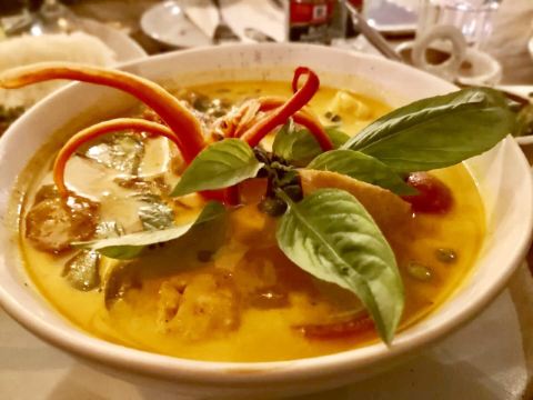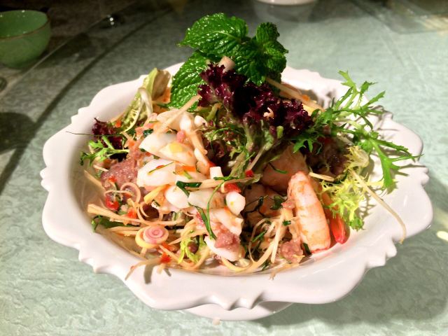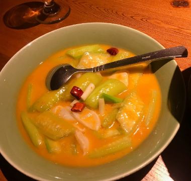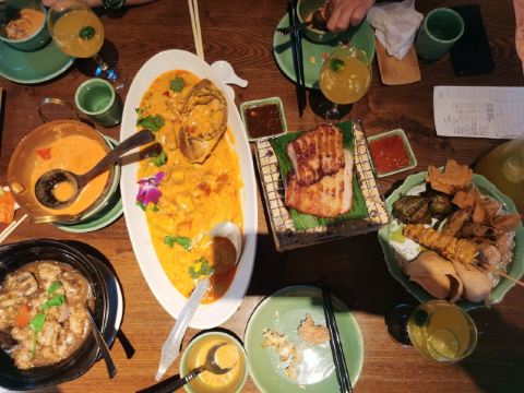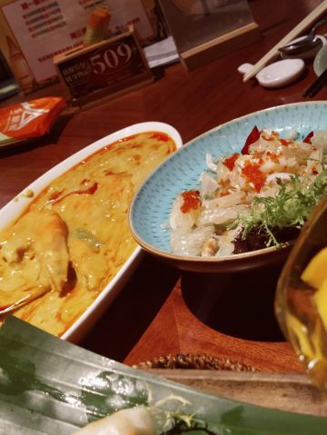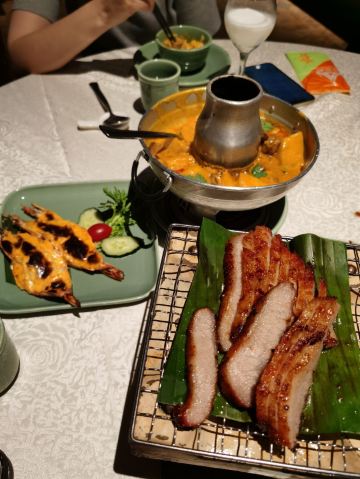 餐厅充满了泰式风情,还有驻唱乐队,歌声很美妙。出品的各色泰式菜品味道都很不错,招牌咖喱皇炒青蟹、炭烧猪颈肉等都是点单率很高的菜品。价格不算很便宜,但物有所值。