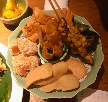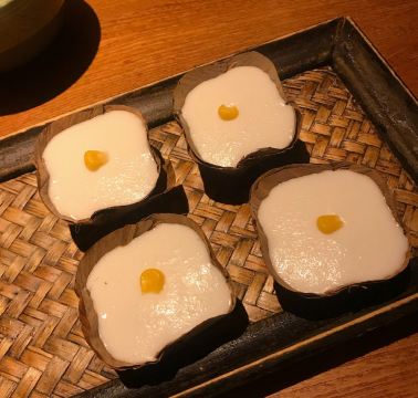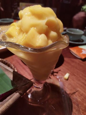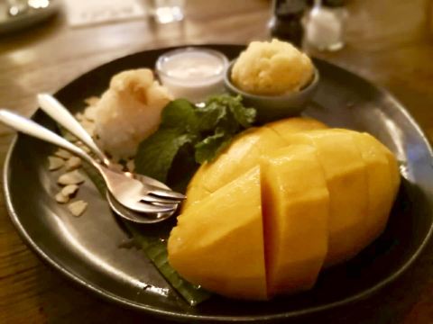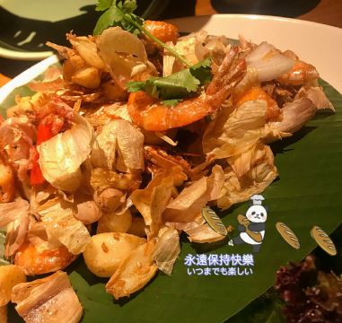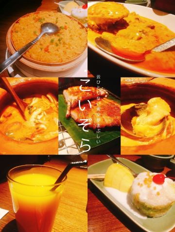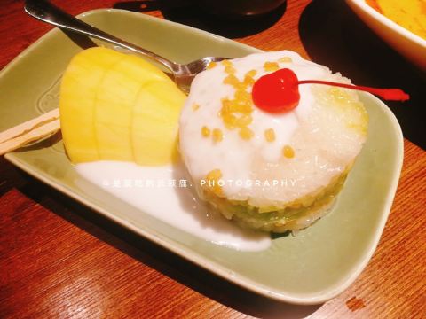 轻轻的一个蚊泰式小食拼盘 里面的虾饼,真的超级好吃,全是Q弹饱满的虾仁,也很完整,超大一个 料超足。我的最爱啦,沾上甜辣酱超幸福,油炸过的鸡肉串,本身就是调过味的,口感很丰富。香兰叶包鸡,虾片,越南春卷,一次可以吃到多种口味。 泰式鱼肚丝瓜 这味道真的太奇怪了,个人不能接受,酸酸的。 蒜香大虾 油炸过的虾真的很好吃,黑胡椒的味道很浓郁 ,虾肉很Q弹。 马来咖喱牛腩 吃泰料怎么能不吃咖喱呢,米饭,的最佳选择,牛腩很软烂,但土豆不够入味,时间不够长。 椰汁西米糕 上面的是滑嫩,浓郁椰香的椰汁糕,下层是西米露, 冰冰凉凉,不甜腻,作为餐前甜品刚刚好。 杨枝甘露 吹爆,很浓稠的口感,芒果很甜大块,饭后解腻超棒。