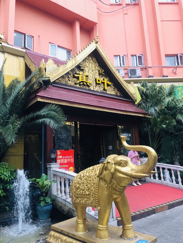宁波几时休当时餐厅开业后的一段时间,门口甚是热闹。 门口四个穿得很鸟类,头上还插着羽毛的礼仪小姐,撒哇地卡,撒哇地卡的叫~~那个白衣服的男的蛮好玩的,也比较热情! 餐厅门外的两头大象时至今日都是很多人的拍照留念的标准物呀! 就是餐厅门外沿街的车站挡住了不少的风景。 不管是泰式香草青口贝、还是红酒腌牛肉,以及香麻手撕鸡,直至招牌榴莲酥都让我赞不绝口,更别说一直保留的经典菜炭烧猪颈肉和咖喱皇炒蟹了。 宁波美食江湖一直流传,宁波吃货对于咖喱的口味都被蕉叶定型了,哈哈。由此可见,吃货们对于蕉叶的喜爱了。 这么多年过去了,餐厅在装修方面没什么大的变化。 服务水准一直保持的不错。