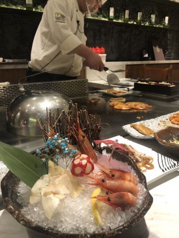 这是一家专门做日式铁板烧的餐厅,装修风格很日式,用餐环境比较舒适。自助形式的烧烤,顾客可以围着烧烤台而坐,一边欣赏大厨的铁板烧手艺,一边品尝美味。推荐三文鱼、银鳕鱼、金针菇肥牛卷等。