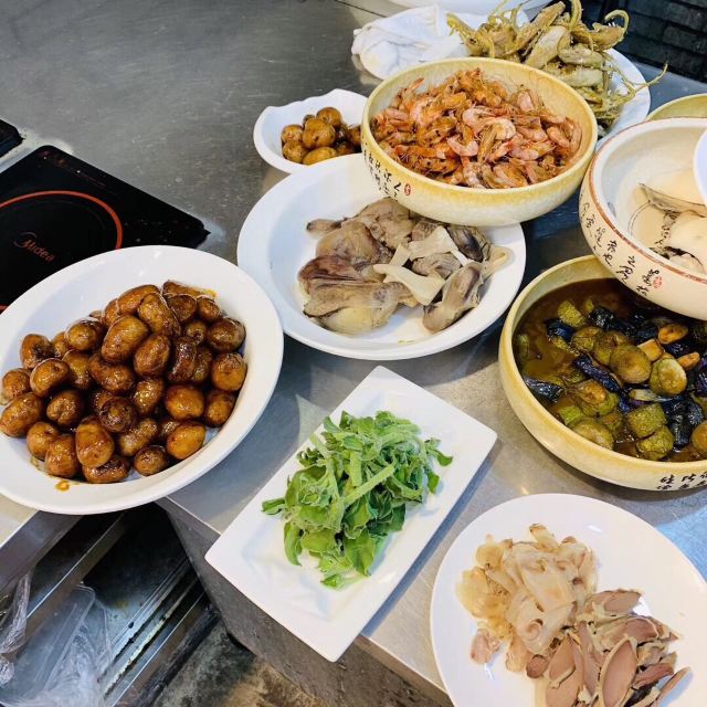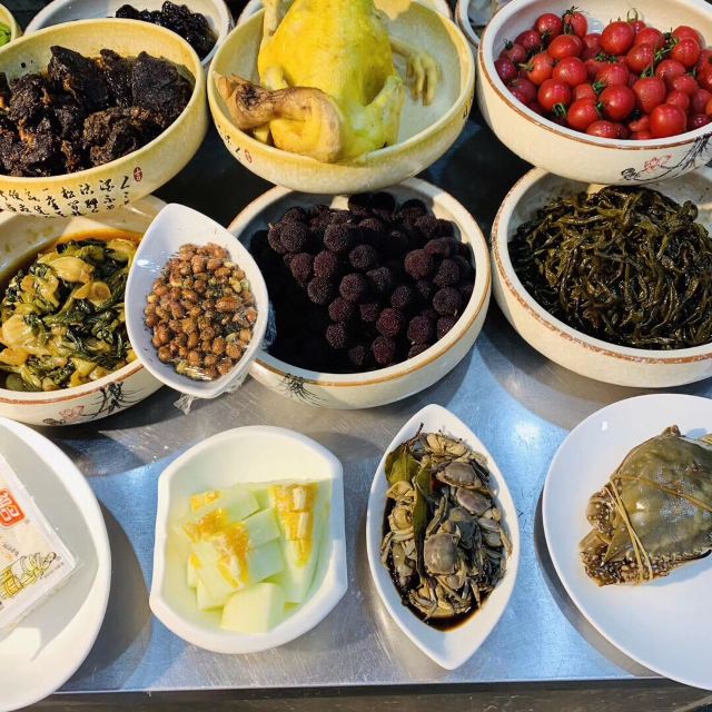 温蟹,辣炒海瓜子,泰式凤爪,椒盐虾菇,酱青蟹,自制蟹糊,清蒸白蟹,宁海土鸡煲,油炸汤团,酱蟹,爆炒海瓜子,风味蟹酱,油炸虾饼,墨汁年糕,椒盐皮皮虾,家烧鲳鱼年糕,姜葱炒蛏子,糖年糕