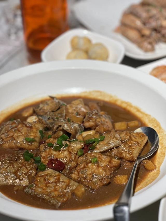 amydog好久不见的海瓜子 2019-9-23 秋高气爽就要吃海鲜,哇哈哈哈 听说宁海食府也算是一家宁波老字号了,开了有些年头了,也是得到当地食客的认可的! 【环境】古色古香,旧时甬城,全部包房格局,就是浙江福建沿海地区的最爱 【口味】 |葱油海瓜子^海瓜子现在也算是个贵价菜了,不像以前了新鲜的海瓜子到底还是不一样,能吃到鲜甜! |雪菜深海黄鱼^哈哈哈哈哈,不管宁波人还是上海人都很爱的一道菜,就算是配角的雪菜也是很重要! |美极虾^这个做了微辣的处理,可能为了吊鲜吧,艾小米不喜欢 |油炸汤团^套餐里的葱油饼没了,换成了油炸汤圆,大爱,外面脆脆的,里面糯糯的,这就是宁波