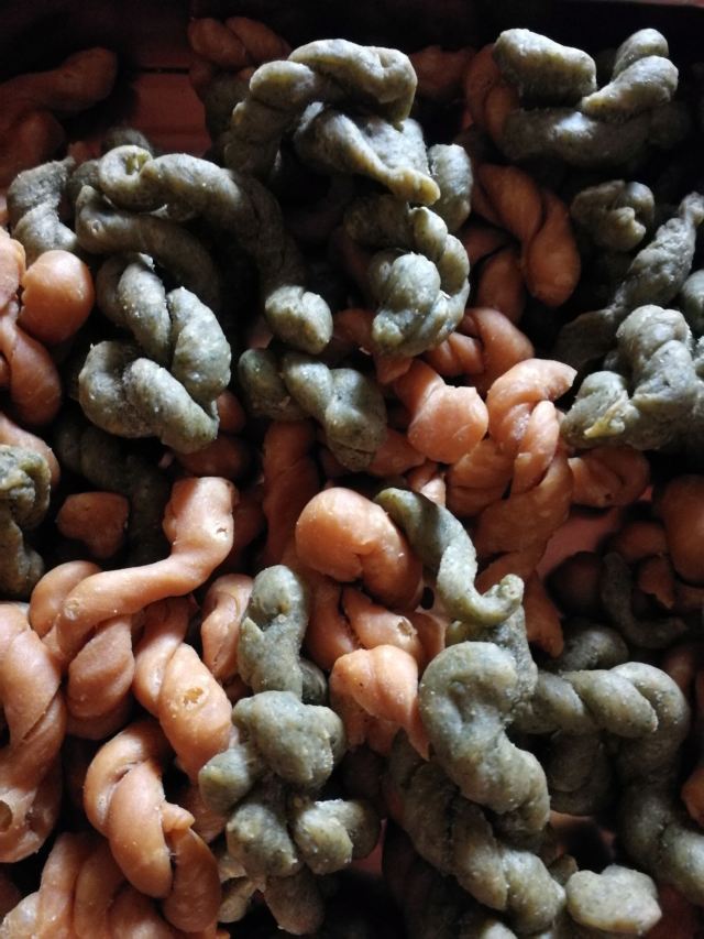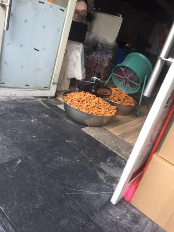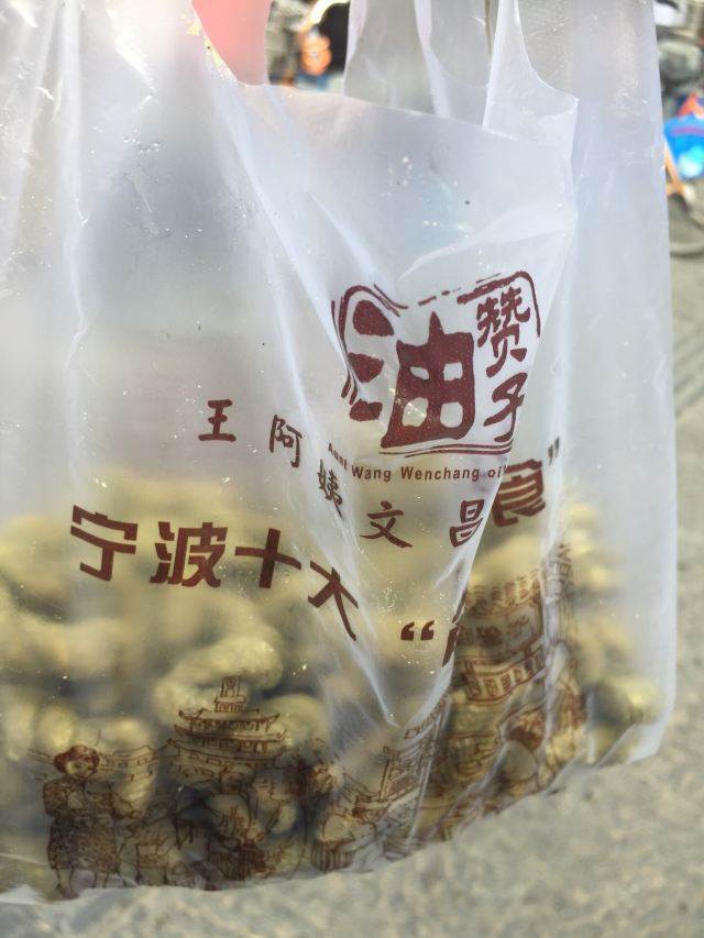 这家店深藏于宁波鼓楼的某个小巷子里,也算是宁波名小吃了。每天都是门庭若市,要排很长的队才能买到,并且还规定排队者每人限购20元。有两种味道,黄色的是甜味的,绿色的是海苔咸味,海苔粉来自奉化莼湖的冬青海苔。由于生意好,现在又开了几家分店。