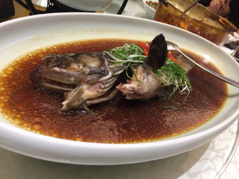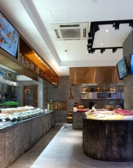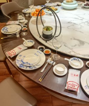 有“小山村”打下的根基,做为国家四钻级酒家的“甬周”的菜品品质当然值得信赖,所以,生意很是红火,饭店周边地面停车位可遇不可求,于是,有工作人员在路口引导开到地下停车场,并有服务员在地下停车场接引。 电梯直达饭店内部,散席、前台和点菜间都在二楼,包厢皆以“X宴”命名,如“雅宴”、“馨宴”...... 包厢内有卫生间和衣柜,装修风格大气,隔音效果好,服务员服务还是基本及时到位的,泡菜东星斑算是特色招牌菜,感觉还可以。