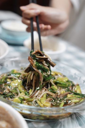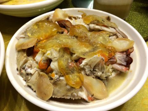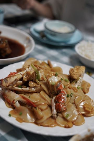 摆渡修行种草这家店很久了 听说是能让人有回家吃饭般幸福感的小馆 门面低调 确实怎么看都会像是一家大隐隐于市的弄堂小店or宝藏食堂 然而 大概是因为休渔期淡季 进门就觉得不妙 店里冷清 阿姨也冷漠 看菜点菜也不愿多介绍两句 烤菜不在季节 点了kao带豆 响油豆瓣鳝丝,过关 韭菜、豆芽、豆瓣的加入 让这道厚重油腻的菜瞬间清爽了起来 热油激发出白胡椒香气 很下饭 糖醋排骨,酱汁偏稀 醋味太弱 成了盘底一层“飘着油的汤” 估计是当天失手了 芋艿排骨,奉化芋艿和排骨一起炖到糊烂黏滑 肉香完完全全渗入芋艿糊中 偶尔咬到酥脆喷香的猪油渣 (平价甬府油渣芋艿羹既视感! 以及宁波菜真的很爱白胡椒粉和勾芡 白蟹炒年糕,宁波年糕炒得都不错 总能把控好最佳口感 软滑弹韧 不粘不焦 虽然知道这个价位的蟹一定是冰冻货 但是蟹肉已经轻微发酸了 最后只能弃蟹吃年糕 疯狂推荐这家店的土著朋友也觉得品质大不如前 看照片对比一下就能发现明显差距,遗憾……实在不希望老店止于传奇