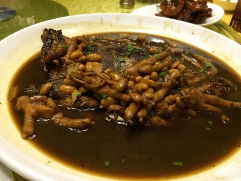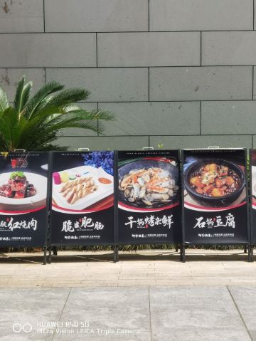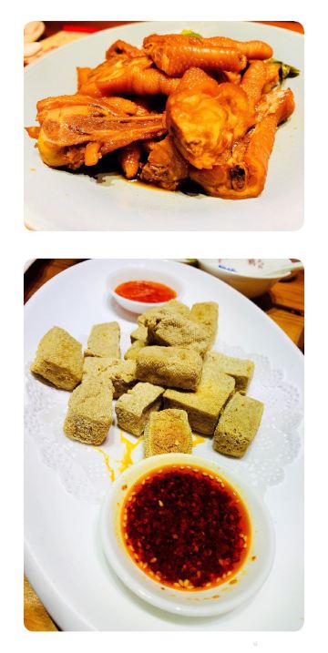 拖延小姐文化广场一小栋楼都是他家的,一共4层,够霸气。 到的时候已经有挺多客人在吃了,在文化广场这种冷清的地还真是难得。 一楼是看菜点菜,有点像老外婆,二楼有散座和包厢,三楼和四楼都是包厢,这里的包厢都是以朝代的名字命名的,我们的包厢是清朝和明朝。 装修也是花了点心思的,水泥墙在砌墙的时候做了点花样,墙壁和天花板都用了各种装饰品点缀,风格各异。让人眼花缭乱。餐桌和椅子是高饱和度的红色,明亮鲜艳,配的是小清新的日系风餐具。 菜品种很多,而且价格都很实惠,走外婆家的路线,难怪客人多。 开胃海带,有点点酸,海带不错,3块一盘的价格,老板要亏的吧 秘制螃圆蟹,地道宁波菜,好久没吃到了,很亲切的味道。 宁波烤菜,烤的不错,也是宁波菜的代表哦 大烤鱿鱼,鱿鱼很嫩,味道不错 熏鱼,鱼肉是不错,但是太甜了 酱萝卜,很脆,味道也还不错,也是太甜了 芹菜海鲜羹,比较清淡的一道羹 小炒秋葵,秋葵看着有点老,吃起来倒还好,养生的一道菜呢 罗宋蟹,白蟹,土豆,番茄做成,土豆太硬,没煮软,味道一般 白蟹蒸目鱼蛋,这道菜一定要配饭,压饭榔头,咸鲜,单吃当然很咸 干锅烧杂鲜,之前在老外婆渔村吃过类似的,但做法不太一样,花蛤,圆蛤,蛏子,小螃蟹,虾姑干锅烧,保持了鲜味,但稍微有点咸,盐没有化开 丝螺烧凤爪,比较混搭的一道菜,凤爪很好吃,丝螺有点沙子 大盘玉秃鱼肉末,超级大的一盘,玉秃鱼很新鲜,肉末味道也很好,不错 红烧膏鱿鱼,带膏小鱿鱼和大葱红烧,小鱿鱼很嫩,烧的也不错 石锅豆腐,独家秘方,豆腐有一面是黑色的,类似臭豆腐,外焦里嫩,酱汁的味道非常不错,有点特色的,推荐 茄子年糕,茄子煮的入味,年糕还可以再软一点,可能我喜欢吃软的吧 椒盐土豆饼,这道菜必须推荐,土豆口感很好,外面一层椒盐很好吃,自己家是做不出来的,吃了3,4个,实在太好吃了,自己去的话还会点 特色蒸蛋,特色就是蒸蛋上面加了一层炒过的咸蛋黄,蛋也蒸的嫩,味道挺好 阿毛鱼头,鱼还蛮新鲜的,吃不了剁椒鱼头的可以试试这个 三鲜汤,非常实在的一大碗,汤很鲜,肉丸、白菜都不错 现磨豆浆,这家的豆浆比较特别,制作方法好像不一样,豆浆有点像豆腐花,味道介于甜和咸之间,不知道该说是特别还是奇怪 美肤红烧肉,也是主打菜,肉切成小小的一块块,煮的很入味,味道不错也不油腻,就是稍微偏甜了点