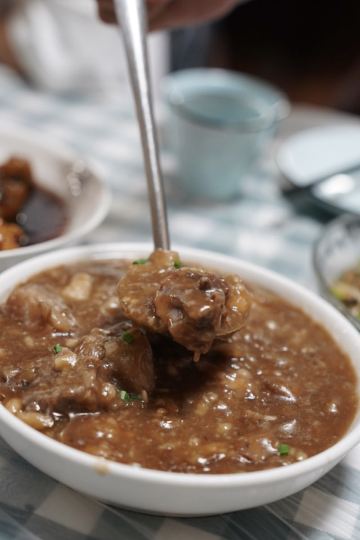 A MAO RESTAURANT种草这家店很久了 听说是能让人有回家吃饭般幸福感的小馆 门面低调 确实怎么看都会像是一家大隐隐于市的弄堂小店or宝藏食堂 然而 大概是因为休渔期淡季 进门就觉得不妙 店里冷清 阿姨也冷漠 看菜点菜也不愿多介绍两句 烤菜不在季节 点了kao带豆 响油豆瓣鳝丝,过关 韭菜、豆芽、豆瓣的加入 让这道厚重油腻的菜瞬间清爽了起来 热油激发出白胡椒香气 很下饭 糖醋排骨,酱汁偏稀 醋味太弱 成了盘底一层“飘着油的汤” 估计是当天失手了 芋艿排骨,奉化芋艿和排骨一起炖到糊烂黏滑 肉香完完全全渗入芋艿糊中 偶尔咬到酥脆喷香的猪油渣 (平价甬府油渣芋艿羹既视感! 以及宁波菜真的很爱白胡椒粉和勾芡 白蟹炒年糕,宁波年糕炒得都不错 总能把控好最佳口感 软滑弹韧 不粘不焦 虽然知道这个价位的蟹一定是冰冻货 但是蟹肉已经轻微发酸了 最后只能弃蟹吃年糕 疯狂推荐这家店的土著朋友也觉得品质大不如前 看照片对比一下就能发现明显差距,遗憾……实在不希望老店止于传奇