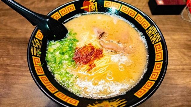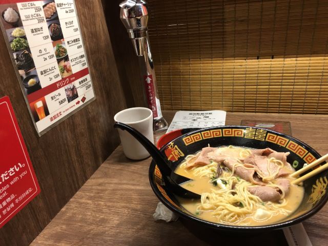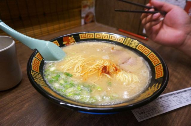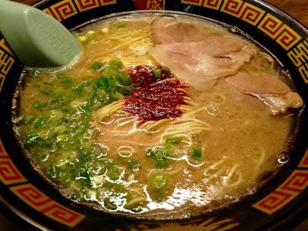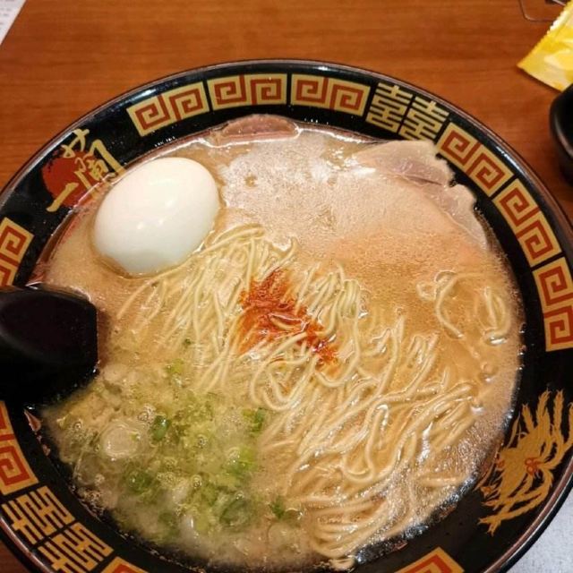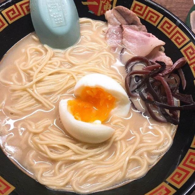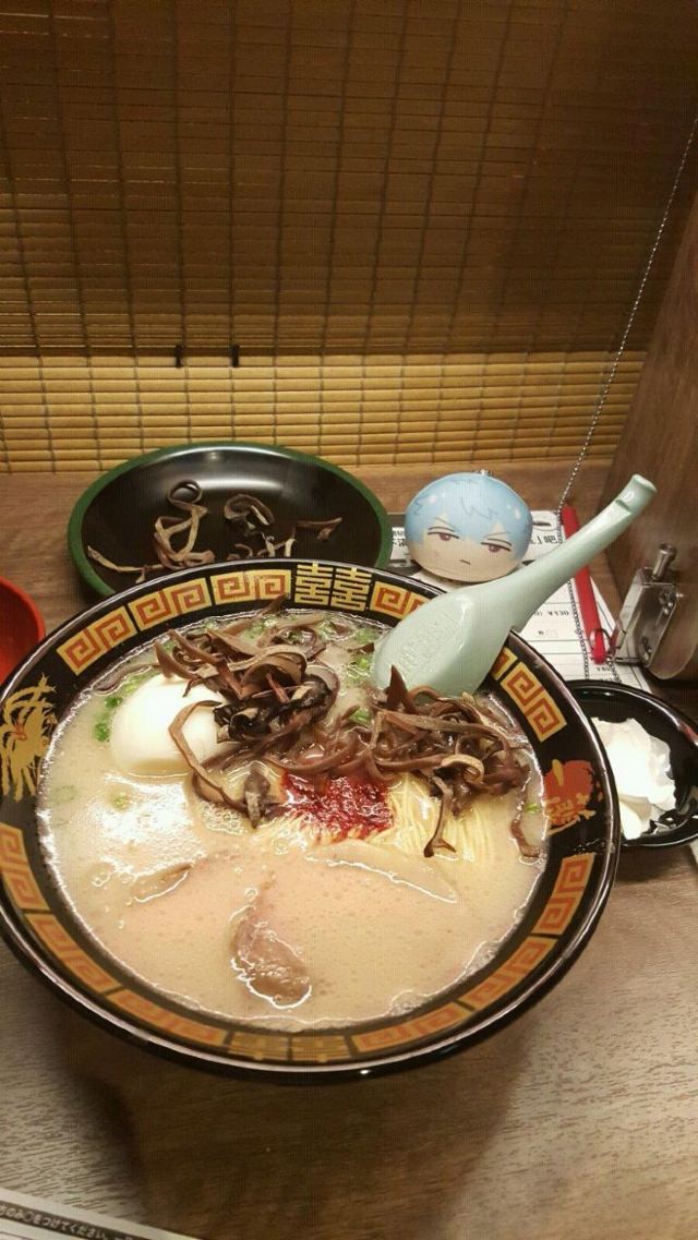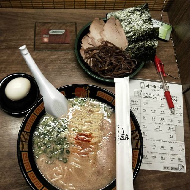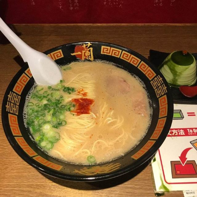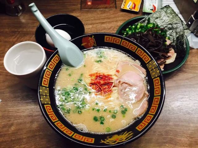 起源于九州,是博多拉面的一种,也是当地豚骨白汤拉面的代表,这里拥有“一个人也可以吃拉面”和“专心吃面”的拉面文化,与众不同的小隔间设计,别人是看不到你吃面的样子,厨师是在帘子另一头制作拉面,也许吃的时候有些寂寞,但是私密性极好的!在门口的点单机上选择种类打印面票,交给服务员就可以入座了。面的口味自选,还可以加海带,面条筋道,汤头很浓郁,吃完拉面一定要大口喝掉汤,碗底会有惊喜哦。座位不算多,需要排队等位的,但是翻桌率很高。