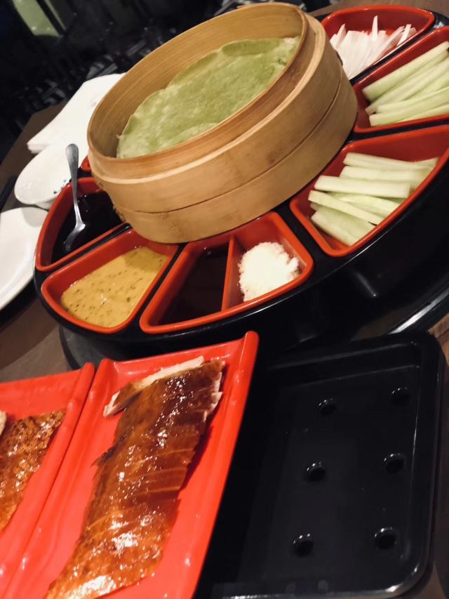 北京烤鸭,鱼翅,金华火腿(金華ハム),萝卜糕(大根もち),凉拌海蜇丝(くらげの冷製),布丁