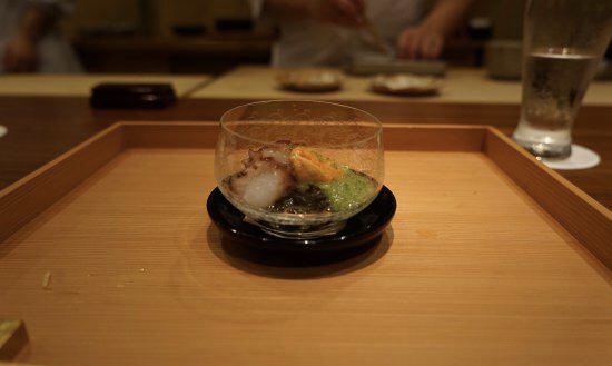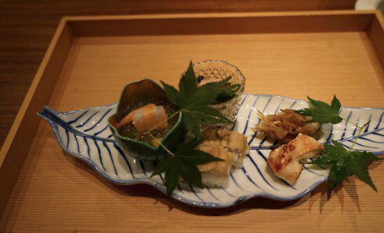 店面不是很大,怀石料理都是应季菜主厨开菜单,厨师擅长料理海鲜,最好吃的是真鲷寿司,米粒分明,上面的鱼很肥美,一口下去回味无穷,海鲜饭吃不完会捏成饭团打包回家,不错。