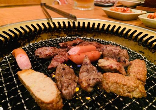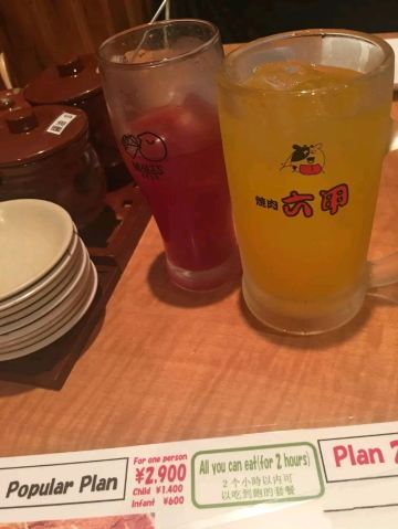 Love China Tours朋友推荐的烧肉店,没有定位直接去的,个台湾妹妹接待的我们,会把问题讲得特清楚告知本店不是吃和牛的,需要现金付款,自己务必确认清楚,因为没有预定所位靠边,是不是能接受,一一确认好落座。会按性价比推荐套餐,我们选了2900的,小孩子半价。酒水畅饮1100我们没要,单独点的可乐和橙汁都是300岡一杯,用扎啤杯的,量不小,温白水、冰水和茶是免的。小料两种搭配着吃特别好。除了瓦罐煨牛肉是条一条的,其它肉类都是按片的,第一轮先每样给上几片,然后以自己填单子加肉