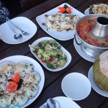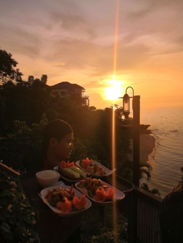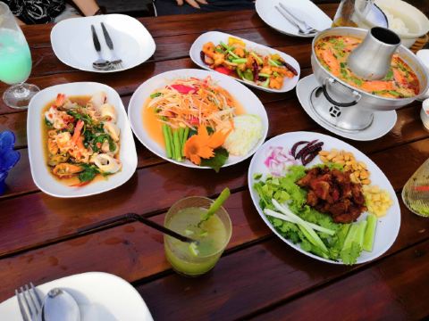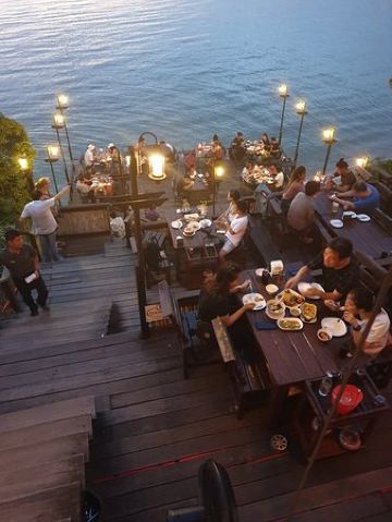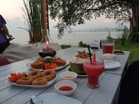 Rimpa Lapin芭提雅的网红悬崖餐厅Rimpa Lapin下午2点以后开始营业,Rimpa Lapin的餐点主要是海鲜以及泰国菜,而且价格也要比市区便宜很,比较有名的菜有蒜蓉胡椒龙虾Rock Lobster fried with garlic & pepper,泰式奶茶和柠檬草茶,柠檬鲈鱼Steamed sea bass with chili lemon sauce,餐厅的氛围和布置做得非常棒,服务生也很利索又和善,重点是餐点真的好吃且不贵,记得一定要在下午5点左右来,6点半左右可以看夕阳日落,来晚了的话需要排队。餐厅人均大约120人民币。