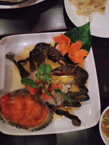 黄油芝士大头虾,Baked Rice in Pineapple,Seafood Spicy Salad,扇贝芦笋,大蒜胡椒炒软壳蟹,芝士烤扇贝,Stir-fried Squid with Salted Egg Yolk,Snake Fruit in Syrup,Deep Dried Snapper in Fish Sauce,柠檬鱼