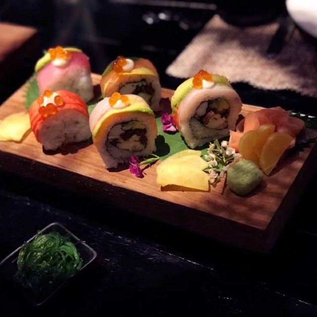 Kurobuta Pork Belly Wrap,Shrimp and Scallop,Grilled Eggplant,Crab Fried Rice,咖喱螃蟹,烤鸡肉串,咖喱肉串,煎三文鱼,生鱼片拼盘,Tapioca Pudding,Homemade Mochi