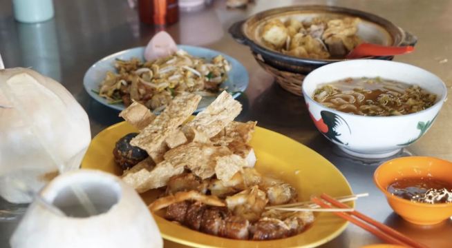 Kaya烤面包,冰咖啡,溏心蛋,薏米水,香蕉派,炒粿条,咖喱鱼头,炒牡蛎,果木烤披萨,福建面,烤鱼,拉茶