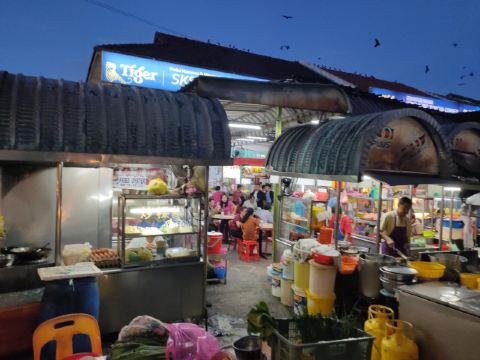 大型的美食广场,虽然环境简陋,但是非常接地气,许多价廉味美的当地美食都能在这里一网打尽。许多摊位都摆放了中文菜单,点单不是问题。炒粿条、咖喱鱼头、炒牡蛎、果木烤披萨、烤鱼,一定让你挑花了眼