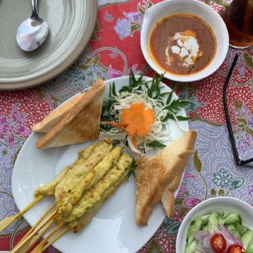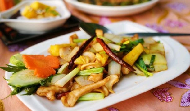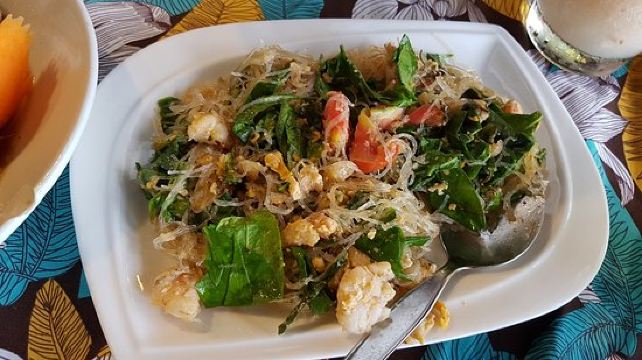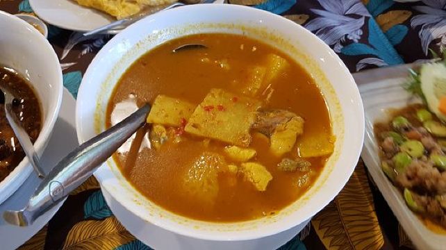 沙嗲,米饭,虾酱空心菜,咖喱螃蟹,香茅草茶,香蕉沙冰,蒜香鱿鱼,腰果炒鸡肉,泰式炒饭,红烧肉,菠萝炒饭,蒜炒鱿鱼,柠檬鱼,椰奶柠檬虾,冬阴功汤,咖喱蟹肉,柠檬炸鱼,芒果糯米饭,泰式拉茶,咖喱蟹,泰式炒河粉
