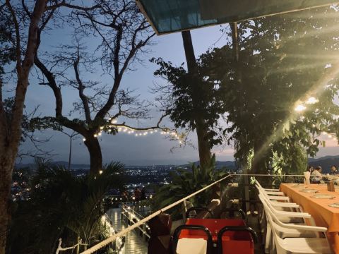 位于山顶的餐厅,周围被绿植环绕,十分贴近自然。餐厅中还有一个小的观景台,能让你更好地欣赏普吉镇的美景。除了美景之外,这里的美食也是游客们争相前来的原因。椰奶柠檬虾、冬阴功汤、菠萝炒饭是这里的招牌。