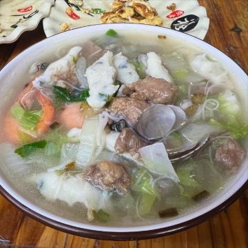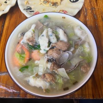 口味:特色咸米时 糯米包着海鲜馅料,外面黄色的米不知道是什么,反正糯糯的,面有海蛎,有虾,有海带,和一些菜,很好吃,咸口,很鲜。天长地久 微甜,外面面的口感有点像咸米时。八珍炒糕 是微咸口,里面有海鲜,海蛎,虾,还有花生,也是糯糯的。海蛎炒蛋 和海蛎剪不一样,做法不太相同,老板解释了一下,没太听懂,炒蛋应该是没有淀粉。海鲜煮线面 线面就是很细的粉,我们要的是加料的,里面有虾,生蚝,有肉,猪肉确实比较丰富。 环境:不是很大,饭店人不少。 服务:不错