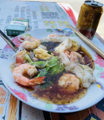 32年老店了 坚守着普宁肠粉的特色 肉末 鸡蛋 鲜虾 生蚝 任君选择 唯独没有汕头肠粉里常见的牛肉 却有汕头肠粉没有的浓郁汤汁 就开在水产市场里 虾蚝新鲜没得说 如果从未试过用勺吃肠粉的 一定要来普宁渔行