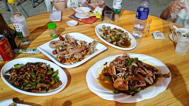 姜葱焗蟹,油煎马鲛鱼,五香鸭方,农家小炒肉,双椒爆番鸭,大白菜炒豆腐泡,干炸豆腐泡,木耳炒肉片,榨菜肉丝汤,油淋自哂鱼干,清水福螺,清炒小白菜,清爽黄金糕,火爆腰花,爆炒猪舌,爆炒鱼肚,猪肚汤,白米饭,笋干焖肉,红烧肉,肉片汤,肉片炒青椒,花生汤圆,青椒鱿鱼筒,油煎大带鱼,青炒地瓜叶,优质海鲜捞面,酸辣大白菜,渔夫小鱼干,农家海蛎煎,爽口海虹,蛏子豆腐汤,渔民小杂鱼,水电鱼