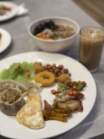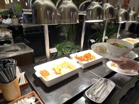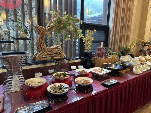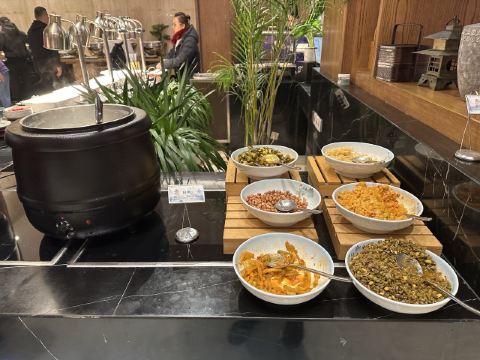 去江西旅游,来到了葛仙村旅游度假区,住房包早餐,是在景区里面唯一的一家景区自营餐厅里面用餐。天元餐厅,是在景区的中心位置,从我们住的酒店步行过去就几分钟很方便,早上用餐的人非常多,开始还需要等位。 这里是自助餐的形式,品种不算特别丰富,但是基本上都有,都能满足你的需要。我吃早餐比较简单,一碗汤粉、一杯咖啡,再吃点别的肯定就够了。这里也有凉菜,但是不太建议,感觉不太新鲜。