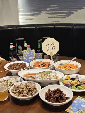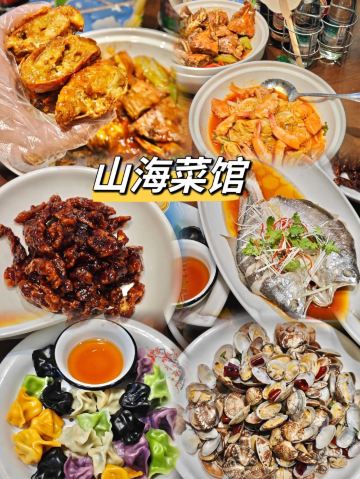 泡芙琳琳青岛老字号山海菜馆 亲爱的宝子们,逛完栈桥一定玩累了吧😄跟我一起品尝一下地道的青岛菜,就在栈桥周围不到300米。 山海菜馆 湖南路34号老舍公园旁 店面全面装修升级,复古的风格彰显新中式的大气,简约,有包间,适合宴请亲朋好友,商务聚餐。 超级好吃的鲁菜 海肠捞饭 满满的海肠铺满了米饭,海肠脆滑的口感,配上肉沫、米饭,真的是一口接一口根本停不下来😄 全家福水饺 本地海鲜水饺🥟五种口味汇聚一堂,有虾仁,墨鱼🦑,黄花鱼水饺,鲅鱼饺子,和韭菜三鲜,来青岛,一定必须吃海鲜水饺🥟 辣蛤蜊 蛤蜊是青岛人每天必吃的海鲜,可谓是鲜味十足,加入辣椒的煸炒更是味蕾上的享受。鲜香微辣也太好吃了吧😄 大虾炒白菜 白菜的鲜甜和大虾的鲜味相融合,不仅色泽鲜亮红润,鲜甜美味,虾香气扑鼻。汤汁才是精华,一口喝下去香密湖乐😄 爱吃海鲜🦞家常菜的小伙伴快来尝尝吧😄 #青岛老店#宝藏小店#海肠捞饭#火车站打卡#栈桥美食#天主教堂美食攻略#栈桥攻略#