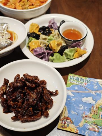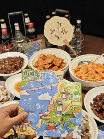 YoYo_6P4K4E5K游青岛,吃山海 前段时间,我的青岛姐妹知道我要来青岛游玩,便早早预定了这家山海菜馆,要让我尝尝地道的青岛美味。 地理位置优越,离栈桥等景点近,方便游客在游玩后享受美食,而且还是青岛姑娘招待外地小姐妹的必选餐厅。 🥘 肉末海肠捞饭:海肠的鲜嫩与肉末的香气完美融合,每一粒米饭都被浓郁的汤汁包裹,入口鲜香四溢,让人欲罢不能。姐妹看着我吃得满足,笑得格外开心。 🥟 全家福水饺:地道的青岛特色,各种肉馅鲜嫩多汁,饺子皮爽滑劲道,一口咬下去,满满的大海味道。姐妹一边给我夹饺子,一边讲述着全家福水饺背后的青岛故事。 🥬 大虾烧白菜:大虾的鲜美融入白菜中,白菜软烂入味,与大虾的鲜甜相得益彰。 🦀 香辣蟹:蟹肉肥美,香辣的调料恰到好处地激发了蟹的美味,麻辣鲜香,十分过瘾。姐妹说这道菜是她每次必点,就好这一口香辣。 🍚 海肠捞饭:再次强调这道招牌菜,足以见其美味程度,吃过一次就念念不忘。 🐚 油泼扇贝:扇贝新鲜饱满,油泼的做法让其香味十足,口感鲜嫩弹牙。 🥓 糖醋里脊:作为为数不多的非海鲜菜品,却也毫不逊色。外酥里嫩,酸甜可口,十分开胃。 这家山海菜馆,无论是菜品的品质还是味道,都让人无可挑剔。店内环境温馨舒适,服务热情周到。如果你来到青岛,想要品尝地道的美食,山海菜馆绝对是不容错过的好去处!
