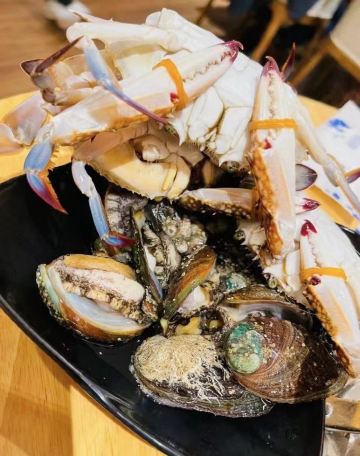 佛跳墙,芝士焗虾,芝士焗生蚝,麻辣小龙虾,三文鱼,提拉米苏蛋糕,活海鲜,大闸蟹,梭子蟹,糕点,清汤靓刺身