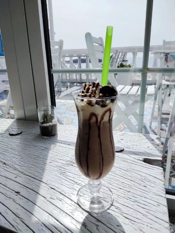 去的时候一定要挑大晴天!大晴天!大晴天!(重要的事情先吼三遍~ 位置在圣地亚哥酒店四楼 如果是从海边走过来很好找,坐地铁和开车的话要从人民会堂站C口边的小路穿过来,不过这片都是老房子,蛮有老青岛感觉的,走这一段路也不无聊哦! 咖啡店的风格比较地中海风,能预订到露台靠海的位置是最好的~碧海蓝天阳光沙滩,拍照非常好看!店里有个超乖的小泰迪,还可以顺便撸撸狗吼吼~ 咖啡中规中矩,甜品让人眼前一亮,小草莓可爱到爆水润Q弹,不忍心挖第一勺!吃起来绵绵的不是很甜,里面有好几层,还蛮好吃的。盘子也是根据不同的甜品搭配的。 一开始要强调天是因为这次去的时候有点晚,起了大雾,还刮起了阴风,虽然店员小姐姐贴心的给了条披肩,不过外面坐了一会还是被糟糕的天逼进了屋,有点遗憾,不过还会再去哒,就留给下次弥补吧~