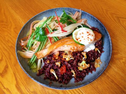 张嘴波浪线AFS更新菜单了(图10) 对AFS的印象一直以来就是出品精美 量足 选料成本高 售价低 服务贴心 图1「香煎三文鱼青木瓜沙拉超级碗」 加入了泰式调料汁与青木瓜的元素 再搭配紫米和香煎三文鱼 挤上少许柠檬汁 就是一盘低热量高膳食纤维与优质蛋白的沙拉饭 极少吃熟三文鱼的我目前只认这家 图2「鲜虾牛油果无花果」 大虾处理得干净 口感扎实 搭配应季的无花果、全麦吐司、纯动物奶油 吃着过瘾 也是复合型的菜品了 图3「法式薄饼一卷了之小牛排」 图4「法式薄饼Afs秋日焦糖苹果」 西餐最近大热的单品据说是这种法式薄饼 俗称可丽饼 工序上偏向中国的煎饼果子 唯一的区别可能就是卷起来食用的内容吧 牛排煎得软嫩多汁 自制的焦糖苹果甜到心里了 AFS对细节的处理总是如此感人 图5「鸡小胸牛油果三明治」是朋友的爱 轻松一半吃光了 直说以后早饭要来店里吃这个 图6「女神的黑松露薯角」则是我的爱 比起薯条 我更喜欢这种带皮的薯角 黑松露的使用给薯角加分了 香味浓郁 蘸着自制的香草奶油酱 满脑子只想着吃光 图7和8分别是「桃你喜欢」「芒果百香果」 AFS给自家的饮品起名字总是特别有趣 但又能让你直观的感受到饮品的组成是真实存在的 比如「桃你喜欢」这类的鲜果气泡饮料 除了好看 为了让气泡持久均匀 AFS直接用巴黎水打底 成本不是一般的高 却只卖¥21 而鲜榨果汁的诚意也是能喝出来的 人均只要¥90+ 是性价比超高的一家西餐厅