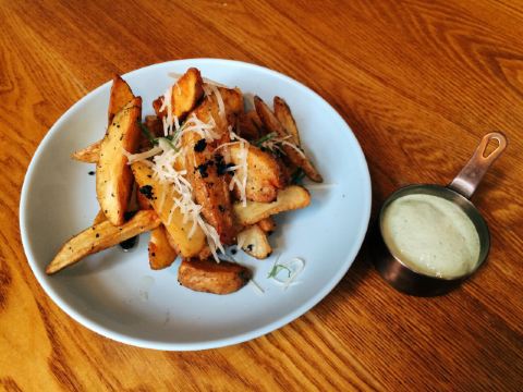 AFS Cafe CanteenAFS更新菜单了(图10) 对AFS的印象一直以来就是出品精美 量足 选料成本高 售价低 服务贴心 图1「香煎三文鱼青木瓜沙拉超级碗」 加入了泰式调料汁与青木瓜的元素 再搭配紫米和香煎三文鱼 挤上少许柠檬汁 就是一盘低热量高膳食纤维与优质蛋白的沙拉饭 极少吃熟三文鱼的我目前只认这家 图2「鲜虾牛油果无花果」 大虾处理得干净 口感扎实 搭配应季的无花果、全麦吐司、纯动物奶油 吃着过瘾 也是复合型的菜品了 图3「法式薄饼一卷了之小牛排」 图4「法式薄饼Afs秋日焦糖苹果」 西餐最近大热的单品据说是这种法式薄饼 俗称可丽饼 工序上偏向中国的煎饼果子 唯一的区别可能就是卷起来食用的内容吧 牛排煎得软嫩多汁 自制的焦糖苹果甜到心里了 AFS对细节的处理总是如此感人 图5「鸡小胸牛油果三明治」是朋友的爱 轻松一半吃光了 直说以后早饭要来店里吃这个 图6「女神的黑松露薯角」则是我的爱 比起薯条 我更喜欢这种带皮的薯角 黑松露的使用给薯角加分了 香味浓郁 蘸着自制的香草奶油酱 满脑子只想着吃光 图7和8分别是「桃你喜欢」「芒果百香果」 AFS给自家的饮品起名字总是特别有趣 但又能让你直观的感受到饮品的组成是真实存在的 比如「桃你喜欢」这类的鲜果气泡饮料 除了好看 为了让气泡持久均匀 AFS直接用巴黎水打底 成本不是一般的高 却只卖¥21 而鲜榨果汁的诚意也是能喝出来的 人均只要¥90+ 是性价比超高的一家西餐厅