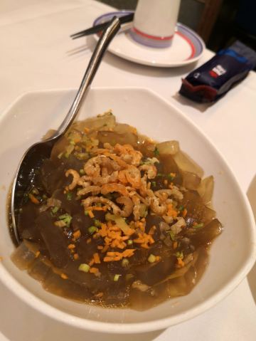 周末出来溜娃,在万象城玩完了就地解决,老牌的外婆家等都吃了好几次了,所以决定来青岛开海老品牌尝尝。店家位置于四楼的中心区域,很好找。周日晚上人还不算多,不用等位可以直接入座,门口迎宾根据你报的人数给你一个桌号,进门就可以报桌号点餐了。上菜还算快把,就是那一条鱼将近一个小时,不知道是忘了还是后厨处理能力有限,但是味道还是相当不错的。凉粉口感不错,解暑!炸肉量有点少,再加上一份招牌双虾仁水饺,两大一小足够了。服务还是不错的,随叫随到,专门收拾碗碟的都是一些上了年纪的阿姨来发挥余热。