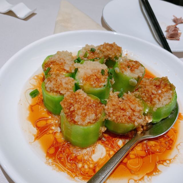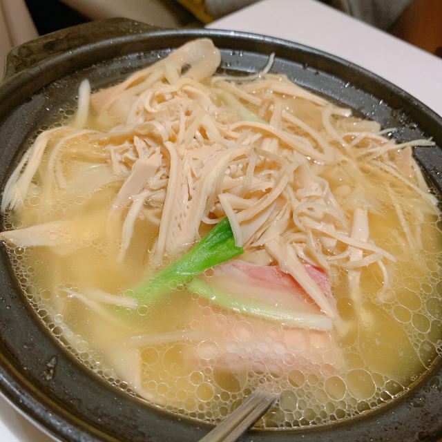 节假日去金狮广场人也不算少,不过比起万象城是强多了,一行人中有忌口的不能吃海鲜和辣,就选了这家没去过的店。 【环境】整体装修挺有调调的,里面很大桌数不少。如果请客吃饭应该也是有单间的。 【服务】春节假期服务跟不太上,上菜非常慢,旁边一桌比我们来的晚,几个都点了的菜品确实给旁边先上的,我们急着看电影,催菜无数次,20分钟上了第一个菜,后面的菜品也是都挺慢的。 【口味】不过公道的说上菜满了点,口味倒是还不错。稍微双拼没什么亮点,不是配酱的那种不是很有滋味还有点腻,不如一些港式茶餐厅的味道。腊味饭挺不错,米饭爱好星人的最爱,一份分量挺大估计4个人都够吃了。鲜肉竹笋应该是这个名字,口味比较清淡,也比较鲜的。蒜蓉蒸丝瓜,感觉跟蒜蓉搭配的菜都不会难吃,点了这一个,事实证明还是挺不错的。 总体来说还是比较值得尝试的一家店,平时不忙的话体验感可能会好一点吧。